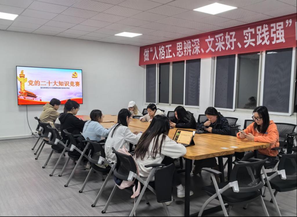 为贯彻落实党的二十大精神,积极探索“党建+互联网”新模式,进一步提升积极分子的理论知识水平,3月27日19时,“党的二十大知识竞赛暨文新学院2024年春季发展对象推优考试”于伟德官网金盆岭校区九号教学楼217-218室成功举行。
