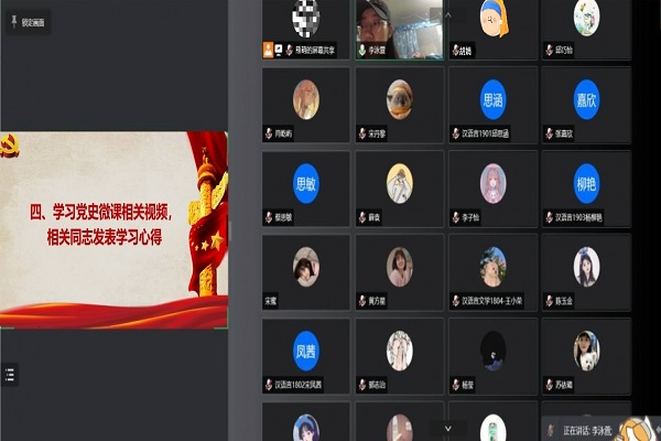4月19日下午14:00,汉语言文学本科生党支部利用腾讯会议召开党课学习会议,会议由熊萌同志主持,会议主题是“勇毅笃行向未来,踵事增华再出发”——中国共产党人精神谱系主题学习。