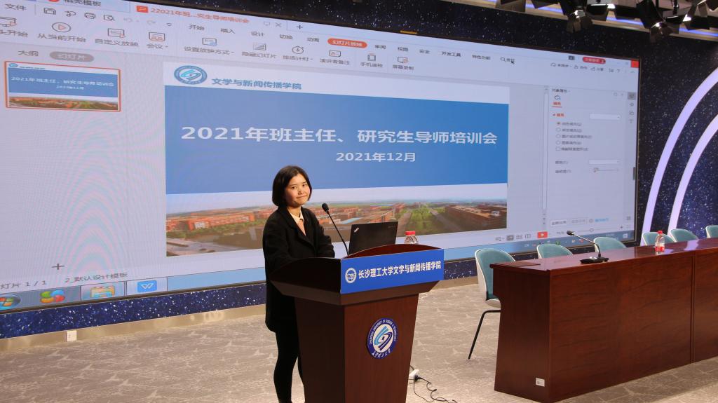 12月21日下午,我院心理辅导员楚艳鸽于文科楼B300全媒体实训中心面向文新学院全体教职工开展心理健康教育知识专题培训。