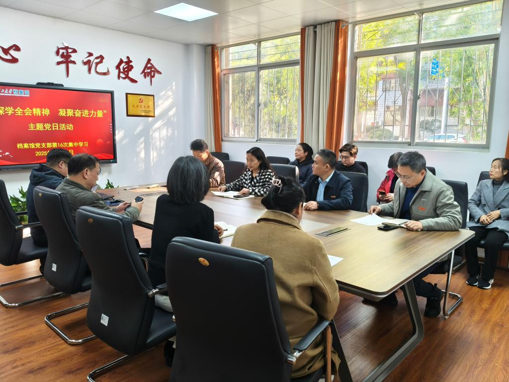 12月19日,档案馆党支部开展了“深学全会精神 凝聚奋进力量”主题党日活动(二),会议由党支部副书记王任飞主持,档案馆全体职工参加。