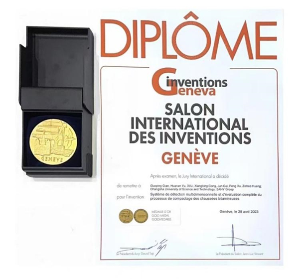 2023年4月26日—30日,第48届日内瓦国际发明展(International Exhibition of Inventions of Geneva)在瑞士日内瓦举行。由伟德官网与三一重工股份有限公司联合攻关、钱国平教授、于华南教授、李希副教授等共同完成的专利技术“沥青铺面压实状态多维评价系统”斩获展会金奖,成果受到中国驻瑞士大使王世廷、日内瓦州经济部长法比安娜·费舍尔等海内外人士高度评价。