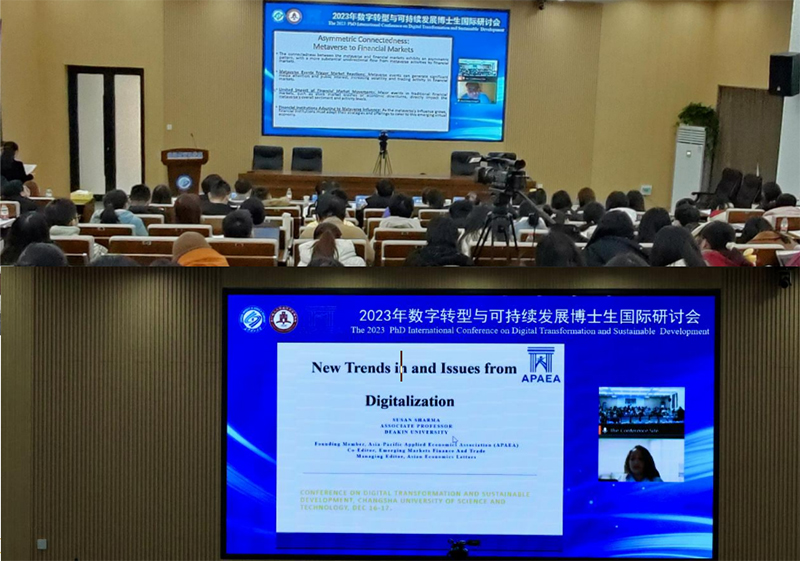 本次会议汇集了来自全球各地的专家与青年学者,共同探讨数字转型与可持续发展多维度问题。与会者通过深入交流和探讨,分享了各自的研究成果和学术见解,为数字转型和可持续发展领域的研究注入了新的活力和创新思路。16日上午,吉雷∙戈兹戈尔教授、苏珊∙夏尔玛教授、李双燕教授受邀分别就“元宇宙与金融市场的关系”、“数字化的新趋势和新问题”、“科技增强金融市场表现:人工智能在股价暴跌风险中的作用”等议题作主旨报告。