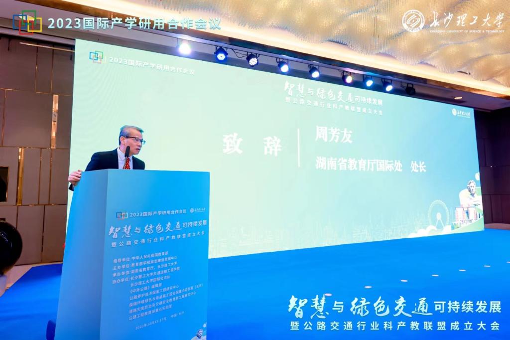 周芳友在致辞中表示,国际产学研用合作是建设世界重要人才中心和创新高地、做强区域经济、促进高校发展的重要抓手。希望我省高校以此次会议为契机,加强同国内外高校、科研院所、企业的交流,深化国际产学研用合作,将湖南丰富的科教资源,加速转化为科技创新优势,为实现湖南省“三高四新”美好蓝图和教育强省建设注入强劲动力。