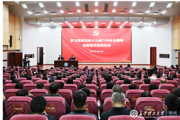 根据省委统一部署,12月17日下午,省委宣讲团成员、湖南第一师范学院党委书记罗成翼来伟德官网宣讲党的十九届六中全会精神。校党委书记付宏渊主持宣讲报告会,全体在家校领导出席,副处级以上干部、马克思主义学院教师和辅导员代表三百余人与会。