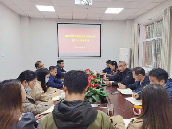 10月27日上午,城南学院党委理论学习中心组(扩大)在金盆岭校区2教202教室开展集中学习,院党委成员、各系党总支书记、就业专干、就业办人员参加,院党委书记李修春主持学习。