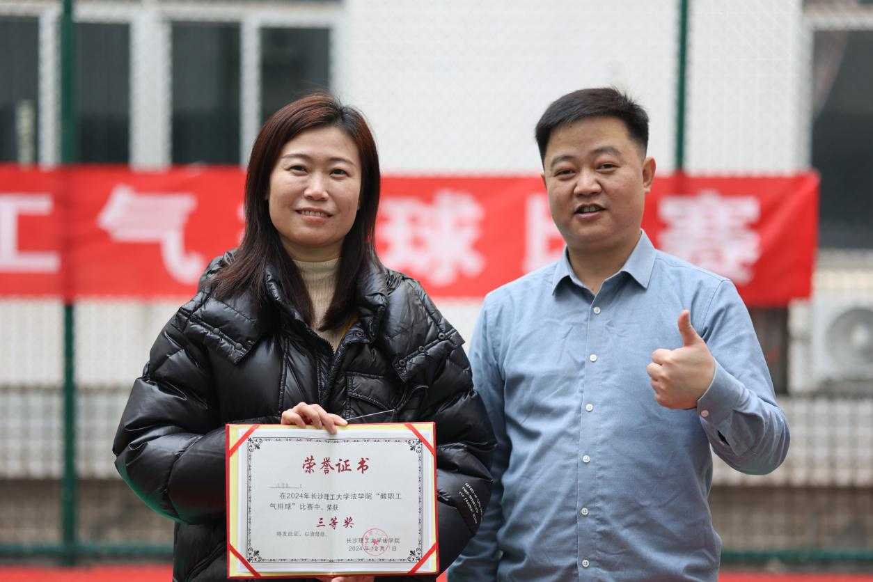 12月17日下午,法学院于金盆岭校区四号教学楼气排球场举行学院2024年教职工气排球比赛决赛,学院院长张敏纯、党委书记龚文斌、副书记汪伦、副院长徐莉出席此次活动,学院全体教职工积极参与。